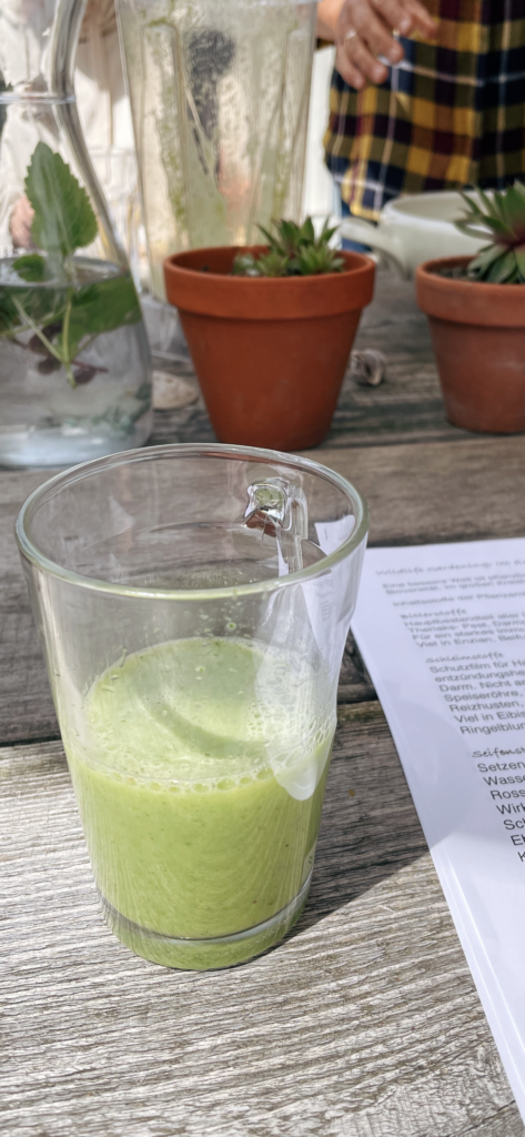 Leistungen: Kräutergetränk und Gartensmoothie, je nach Jahreszeit Ableger oder Samen zum Mitnehmen sowie frisch gebackenes Brot mit Kräutern oder Honig aus eigener Imkerei.
